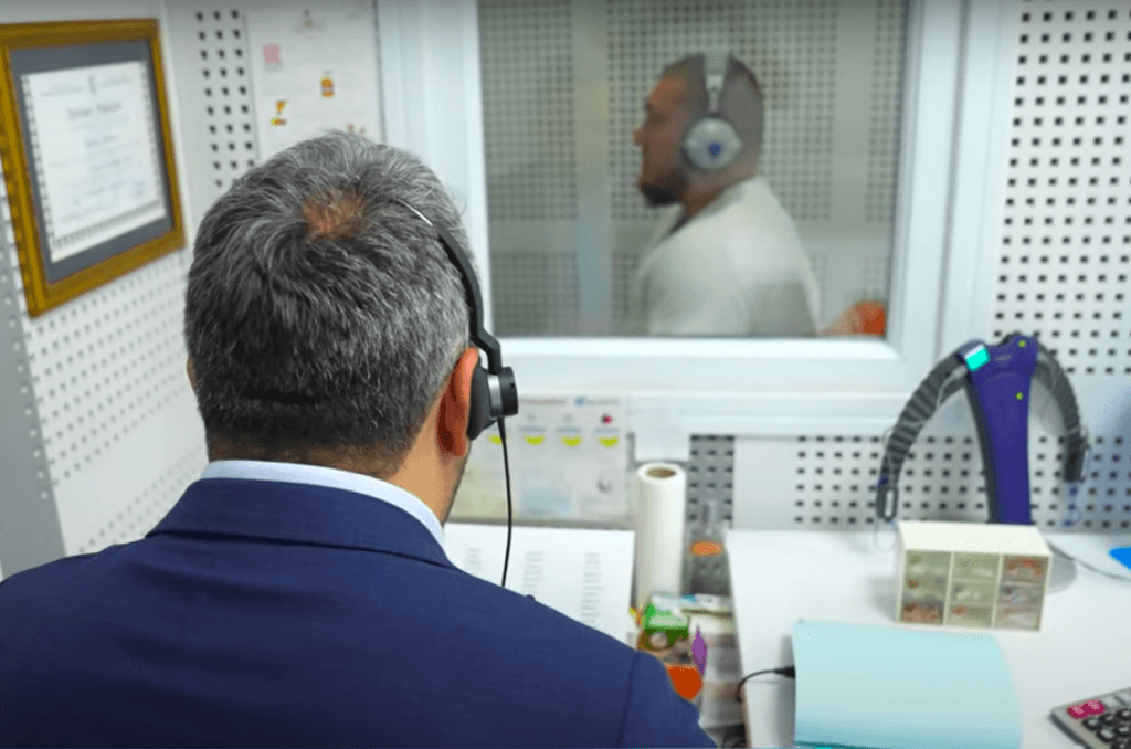- Hastanın oturma pozisyonu, test yapan personeli görmeyecek şekilde konumlandırılır, kulaklıkların kulakları iyice kapattığından emin olunur, test yapılacak alanın kapısı sıkıca kapatılarak teste başlanır.