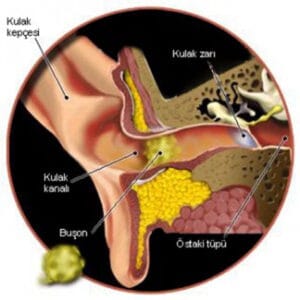 - Dış kulak yolunda serumen haldeyken atılamayan kulak kirinin zamanla sertleşip büyüyerek buşon haline gelmesi ve doğal yollarla atılımının gerçekleşmemesi.